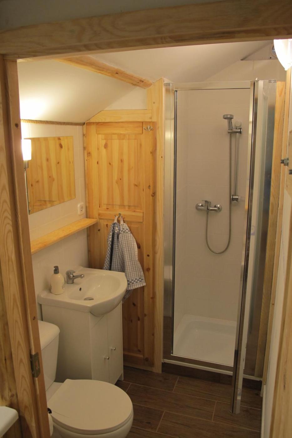 Dom z 1 sypialnią. The fireplace is the standout feature of this holiday home. Boasting a private entrance, this holiday home features 1 living room, 1 separate bedroom and 1 bathroom with a shower and a hairdryer. Guests will find a stovetop and a refrigerator in the kitchenette. The holiday home also comes with a barbecue. The holiday home has a seating area, a wardrobe, an electric kettle as well as a terrace with lake views. The unit has 3 beds. Dom wakacyjny - 4 osobowy. Powierzchnia pokoju ok.: 30 mkw. ;