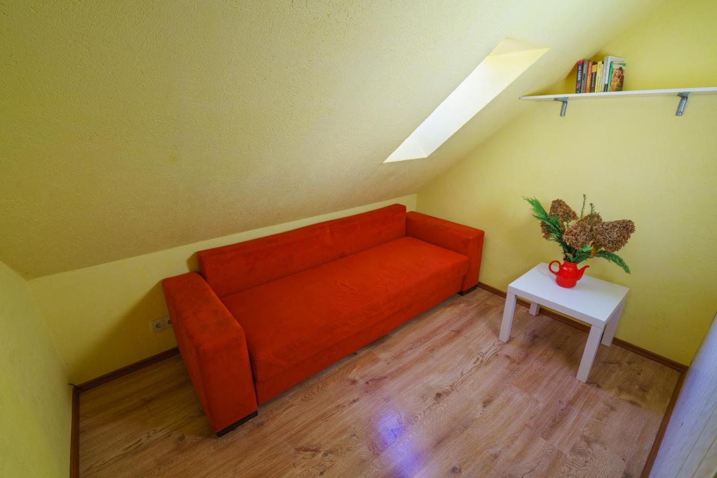Dom z 1 sypialnią. This holiday home provides a fireplace. The holiday homes kitchen, which has a refrigerator, is available for cooking and storing food. Boasting a terrace with garden views, this holiday home also offers a washing machine and a flat-screen TV. The unit has 3 beds. Dom wakacyjny - 4 osobowy. Powierzchnia pokoju ok.: 42 mkw.