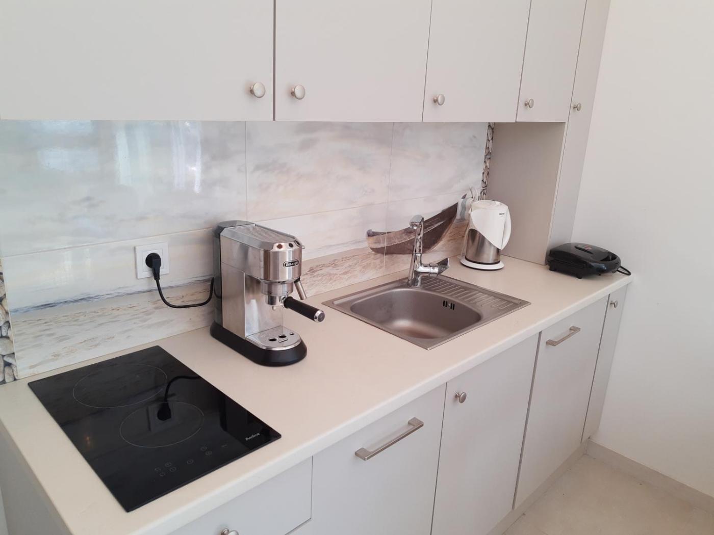 Oferta apartamentu obejmuje sypialnię (1), salon, aneks kuchenny z pełnym wyposażeniem, w tym lodówką i ekspresem do kawy, a także łazienkę (1) z prysznicem oraz suszarką do włosów. W apartamencie zapewniono ręczniki i pościel.
