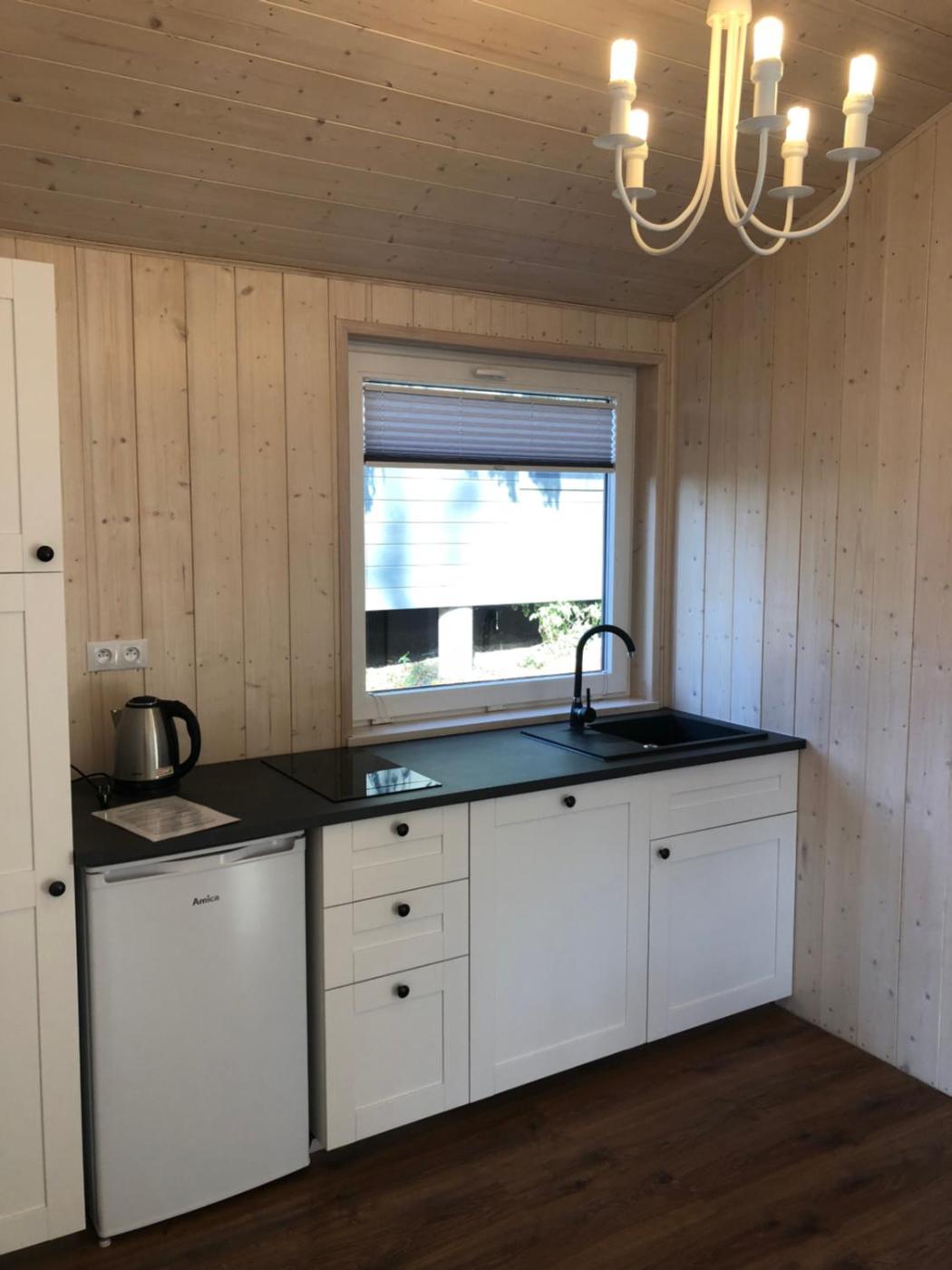 Dom z 2 sypialniami. Ten dom wakacyjny z prywatnym wejściem mieści salon, 2 oddzielne sypialnie oraz łazienkę z prysznicem. W kompletnie wyposażonej kuchni przygotowano płytę kuchenną, lodówkę, zmywarkę do naczyń oraz przybory kuchenne. Goście mogą korzystać z grilla. Udogodnienia obejmują część wypoczynkową, telewizor z płaskim ekranem oraz taras z widokiem na jezioro. W tej opcji zakwaterowania dostępne są 4 łóżka. Dom wakacyjny - 6 osobowy. Powierzchnia pokoju ok.: 50 mkw. ;