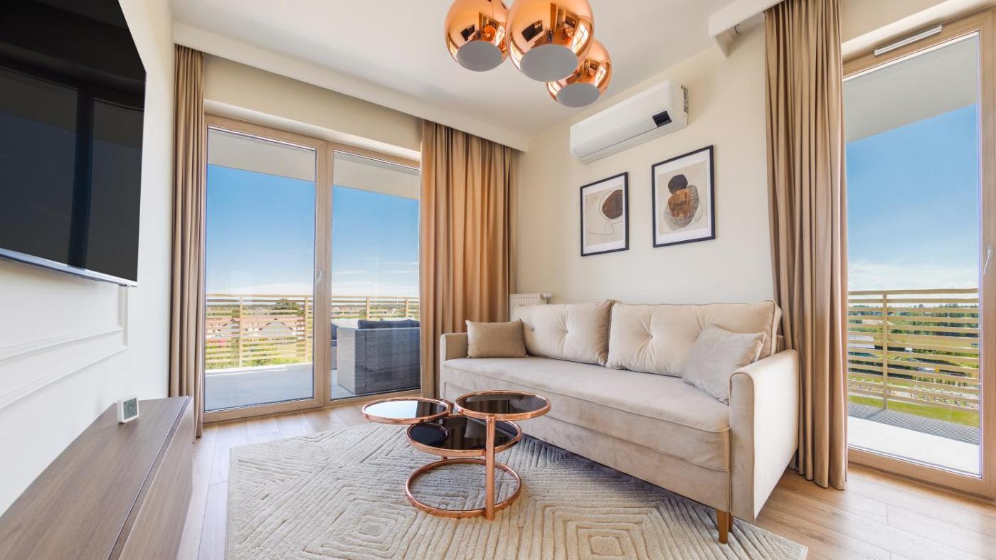 Apartament z 1 sypialnią. Apartament ten mieści salon, oddzielną sypialnię oraz łazienkę z prysznicem i suszarką do włosów. Udogodnienia obejmują doskonale wyposażony aneks kuchenny z płytą kuchenną, lodówką, zmywarką do naczyń i przyborami kuchennymi. Apartament dysponuje tarasem, pralką, ekspresem do kawy i telewizorem z płaskim ekranem. Ta opcja zakwaterowania zapewnia 2 łóżka. Apartament - 4 osobowy. Powierzchnia pokoju ok.: 49 mkw. ;